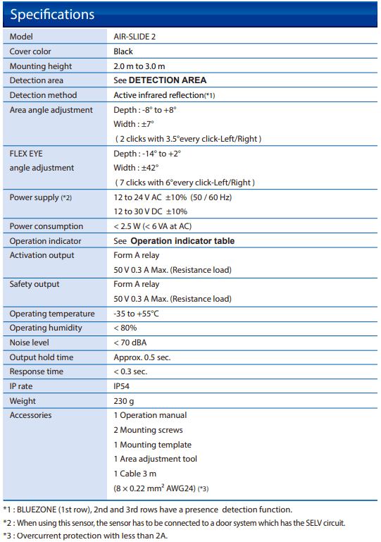 • BLUE ZONE Technology เทคโนโลยีบลูโซน เป็นเอกลักษณ์และตัวกำหนดทิศทางความปลอดภัยสำหรับพื้นที่ทางเข้าประตูอัตโนมัติ บลูโซนจะครอบคลุมพื้นที่ทางเข้าอีกขั้นหนึ่ง เมื่อมีการตรวจจับบุคคลหรือวัตถุ เซ็นเซอร์จะยังคงสถานะเปิดประตูเอาไว้ ตราบเท่าที่มีคนอยู่ในบริเวณตรวจจับนั้น หากพื้นที่ว่างเปล่าบลูโซนจะเลิกควบคุมแผงควบคุมประตู และทำให้ประตูปิดได้อย่างปลอดภัย
