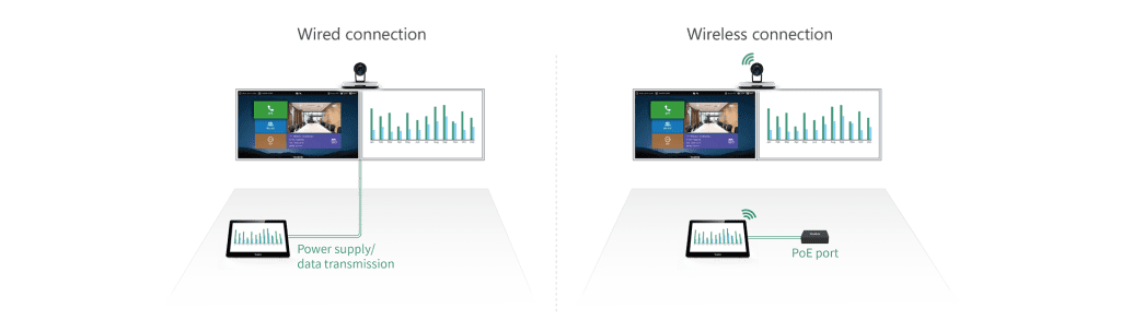 PoE and Wi-Fi connection offer a clutter-free meeting space