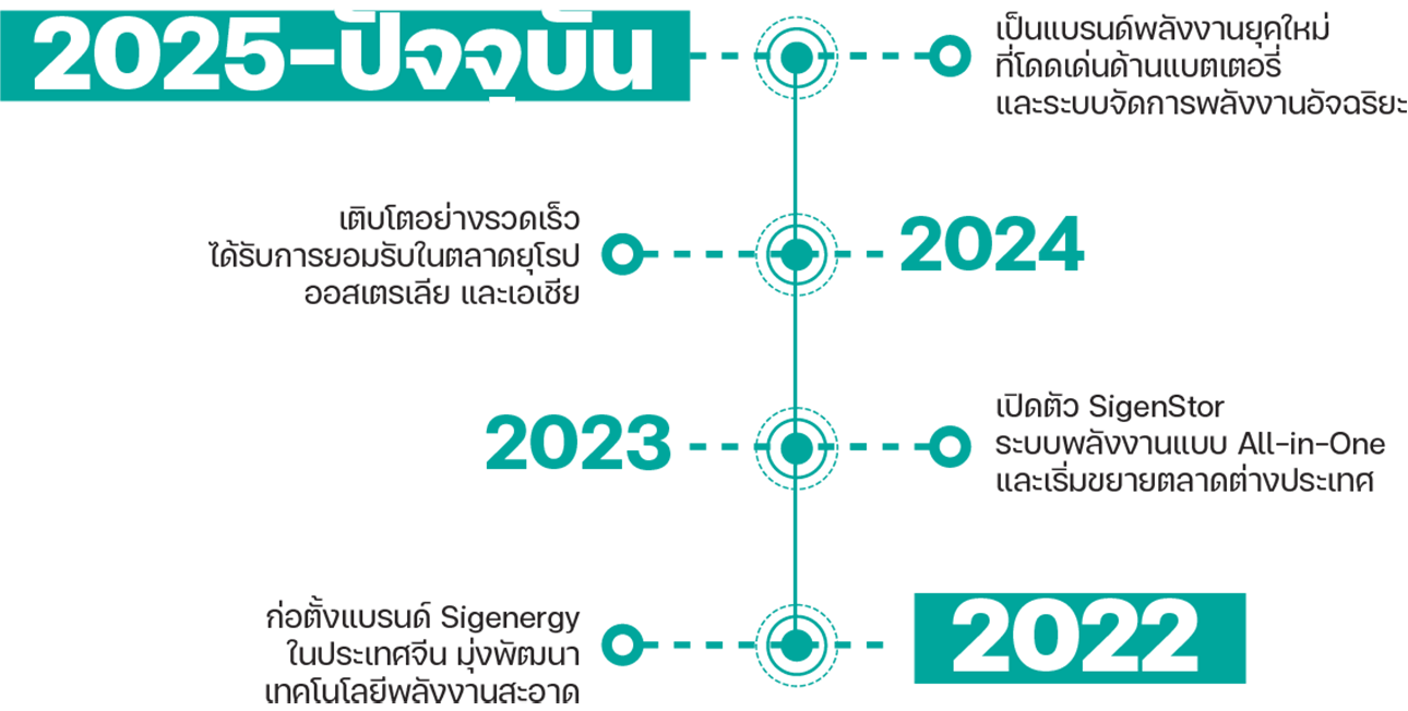 พร้อมผสานเทคโนโลยี AI เพื่อช่วยควบคุมและใช้พลังงานอย่างมีประสิทธิภาพและปลอดภัย ปัจจุบันผลิตภัณฑ์เรือธงอย่าง SigenStor ได้รับความนิยมในหลายประเทศ โดยเฉพาะยุโรป ออสเตรเลีย และเอเชีย ส่งผลให้ Sigenergy ถูกมองว่าเป็นแบรนด์พลังงานยุคใหม่ที่มาแรงและน่าจับตามองในตลาดระบบกักเก็บพลังงานโลก