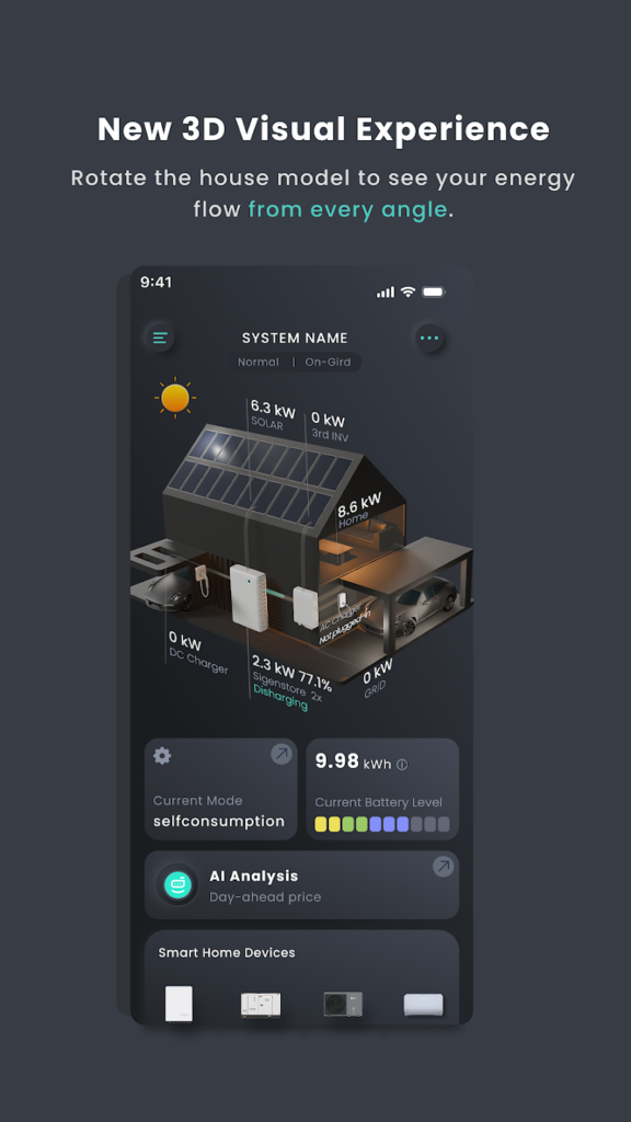 แอปพลิเคชัน mySigen ซึ่งเป็นเครื่องมือบริหารจัดการระบบพลังงานแสงอาทิตย์และแบตเตอรี่ของ Sigenergy ที่ให้ผู้ใช้ดูข้อมูลการผลิตและการใช้พลังงานแบบเรียลไทม์ ควบคุมอุปกรณ์ได้ง่าย และดูแนวโน้มพลังงานได้ ช่วยให้เจ้าของบ้านเพิ่มประสิทธิภาพการใช้พลังงาน และผู้ติดตั้งสามารถจัดการระบบได้อย่างมีประสิทธิภาพ พร้อมฟีเจอร์ทดสอบระบบขั้นสูง