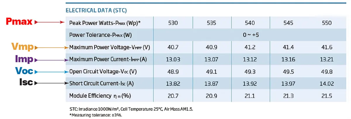 คุณสมบัติต่างๆ ทางไฟฟ้าตามสเปกของแผงโซลาร์เซลล์ ที่จำเป็นเพราะแต่ละค่าจะเชื่อมโยงไปในเรื่องของการออกแบบ