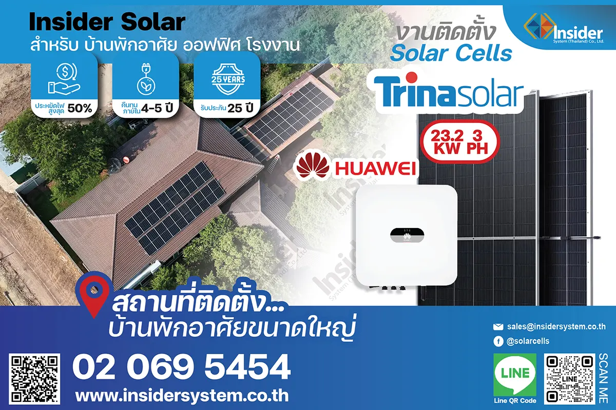 ➡️ ผลงานการติดตั้งโซลาร์เซลล์ โดย Insider Solar ลดค่าไฟ คุ้มค่า และปลอดภัย ✅ดูผลงานทั้งหมด
