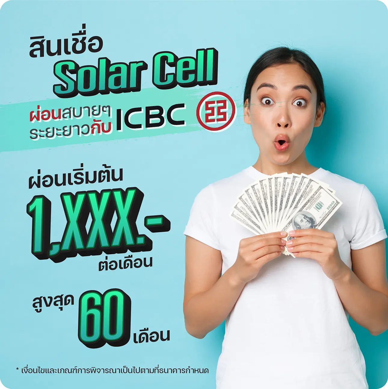 สินเชื่อโซลาร์เซลล์ ผ่อนโซล่าเซลล์ ผ่อนได้นานสูงสุด 60 เดือน