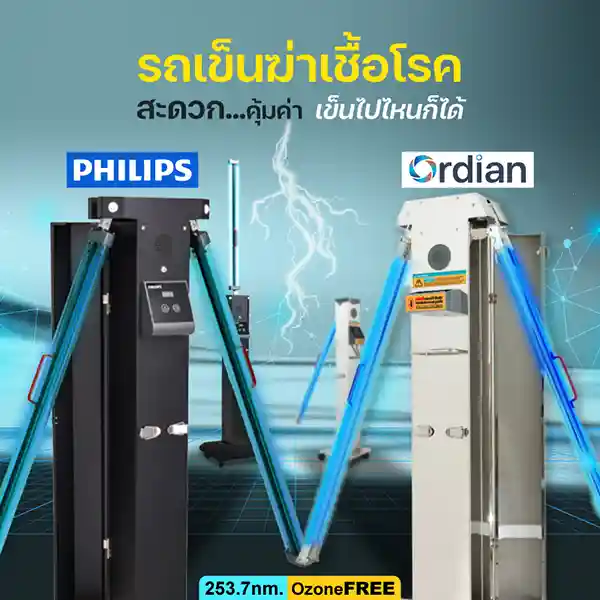 - ไม่มีคนอยู่ ใช้ UV-C 254 nm (ตู้ อบ, โคมเพดาน, รถเข็น)